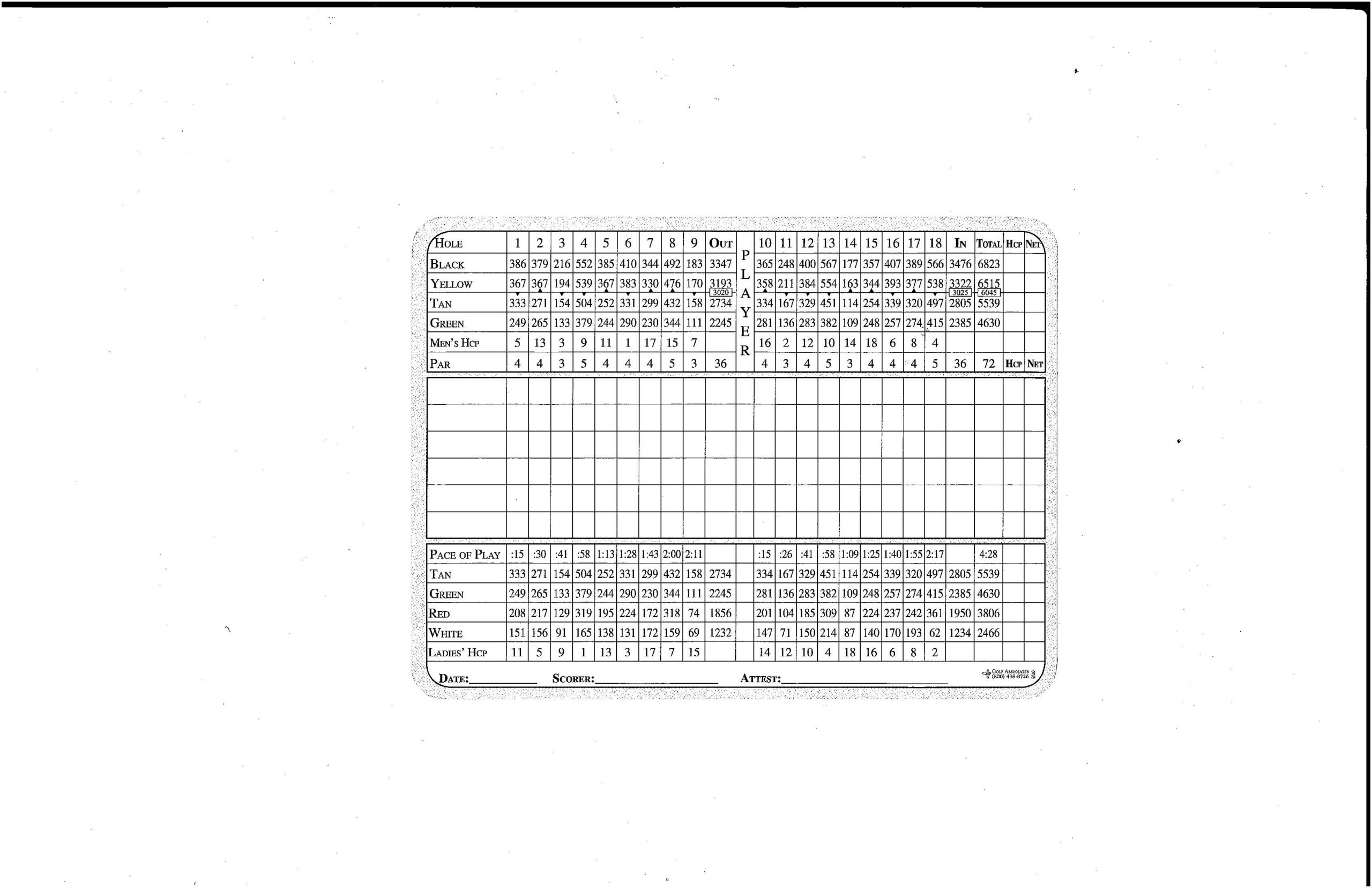 Arcade Creek Golf Course Scorecard