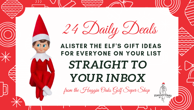 Our friend Alister the Elf will be making his way down from Santa’s workshop at the North Pole to bring you 24 amazing daily deals inside the Haggin Oaks Golf Super Shop from December 1-24!