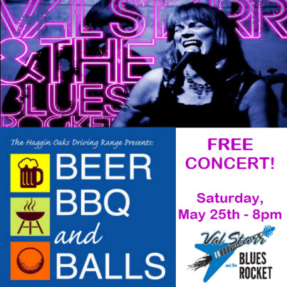 Val Starr & The Blues Rocket is a premier blues and blues rock band based in Sacramento, California performing the best in “California Blues” and they’re coming to the Haggin Oaks Driving Range for our FREE Summer Concert Series on Saturday, May 25th at 8pm during our Beer, BBQ and Balls summer celebration!