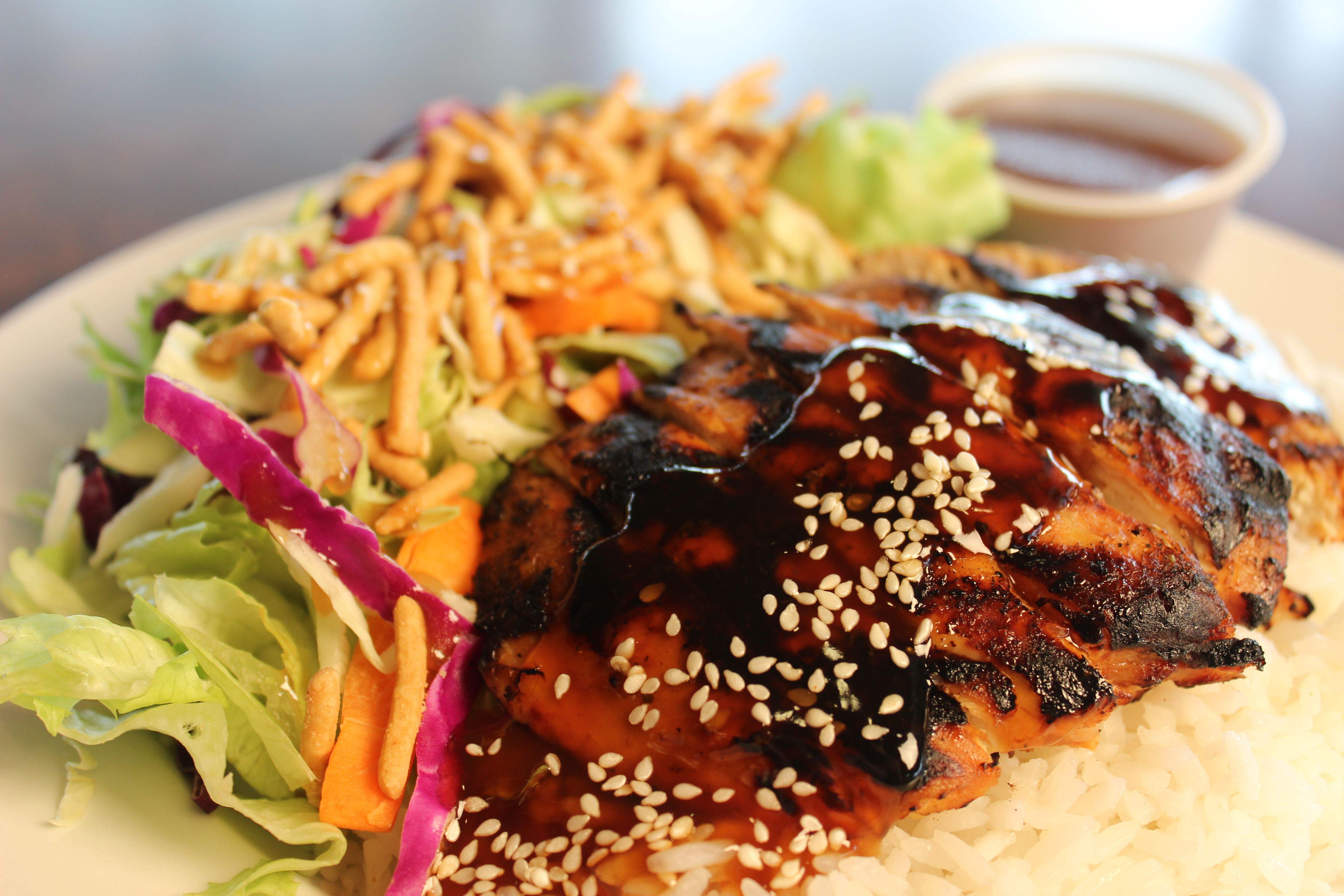 Teriyaki Bowl is a great option this month for lunch at Maloney’s! Sweet teriyaki sauce on sliced grilled chicken on top of rice plus a side salad with ginger sesame dressing. What a yummy alternative to the usual sandwich or burger option, really. Not that we’re complaining about either but, hey, sometimes rice instead of brea