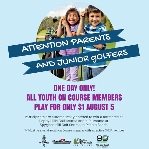 All Junior Golfers 18 and Under Play Golf on August 5 for only $1 with a Youth on Course Card