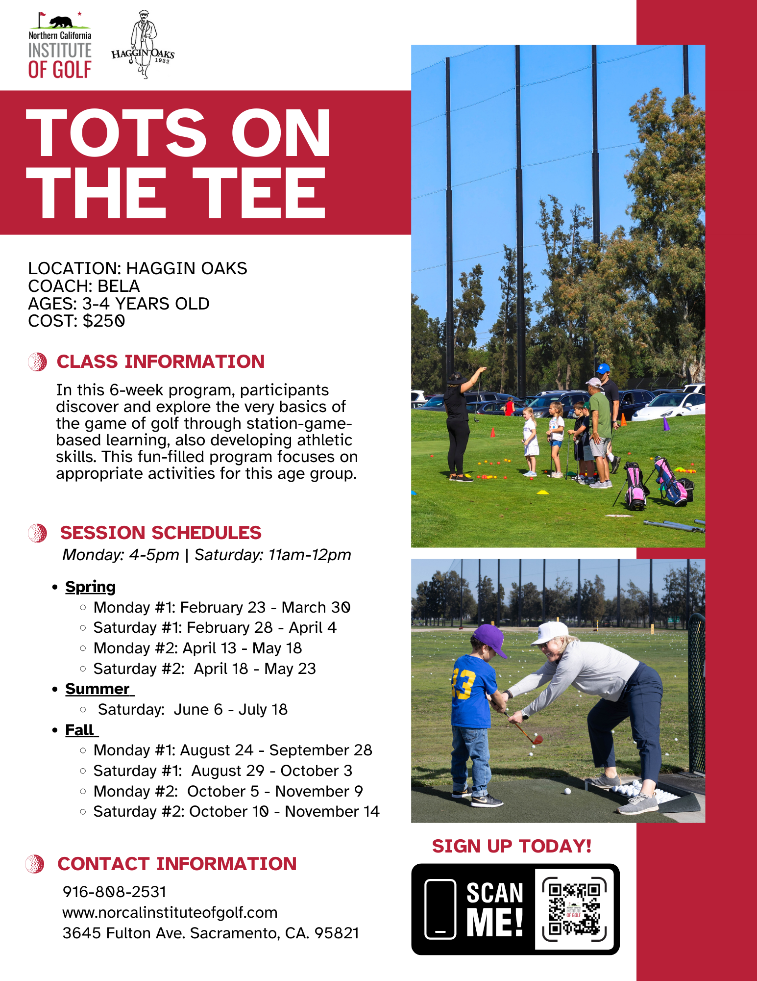 The Northern California Institute of Golf Adult Programs – 916-808-2531